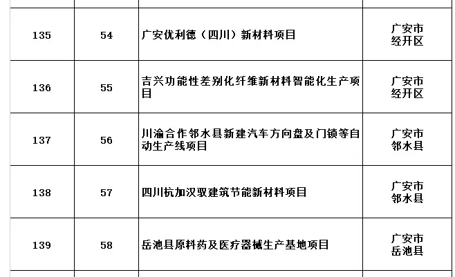 2月4日,小编从四川省发改委获悉,2021年四川将新开工211个重点项目,包括81项基础设施项目、99项产业项目、25项民生工程及社会事业项目和6项生态建设及环境保护项目。 其中,13个重点交通项目即将开始建设,分别为乐山机场、南充高坪机场三期改扩建工程、成都外环铁路、成渝中线高速铁路(四川境内段)、重庆至西安高速铁路重庆至安康段(四川境内段)、隆黄铁路隆昌至叙永段扩能改造工程、大理至攀枝花铁路(四川境内段)、彭白铁路改造工程、G7611线西昌至香格里拉高速公路、镇巴至广安高速公路川陕界至王坪段、资中至铜梁高速公路、G4218线康定至新都桥高速公路以及G5京昆高速公路川陕界至广元段扩容。 (一)、交通基础设施 (二)、园区基础设施 (一)、制造业