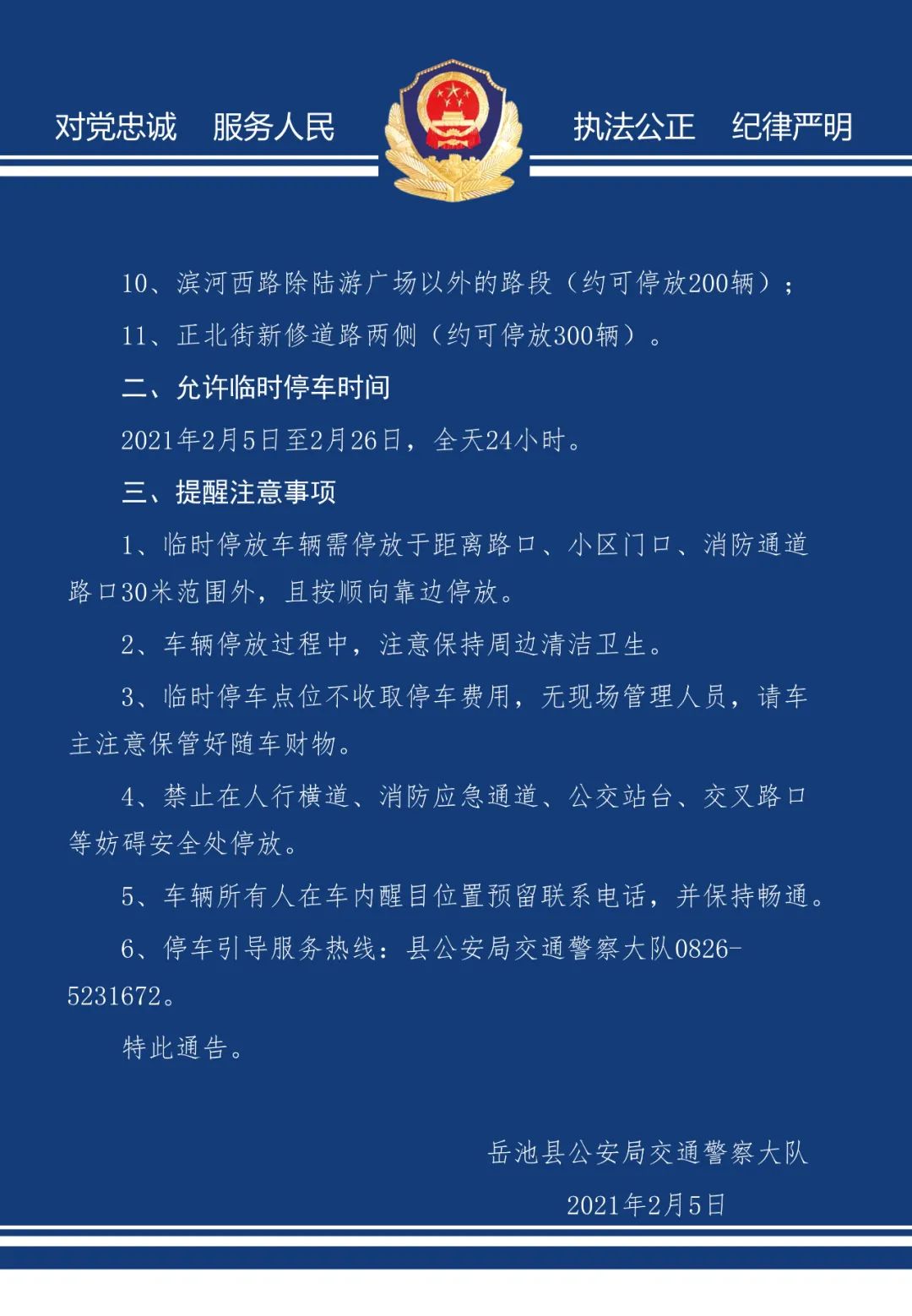 岳池县公安局交通警察大队关于2021年春节期间新增临时停车点位的通告