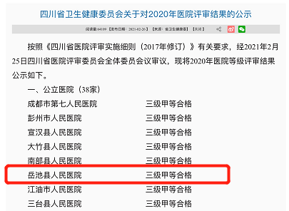 三甲医院创建不是终点,而是踏上了新的征程、新的起点,今后岳池县人民医院将继续砥砺奋进,创新超越,引领地区医疗卫生事业发展,为岳池县及周边地区人民提供更好的医疗服务。