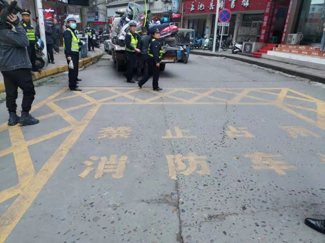 与此同时,在环城东路和财富中心的消防通道,交警大队民警和综合行政执法局的工作人员,正在对占用堵塞消防车通道的非机动车进行拖移,并对相关违停的机动车作出处罚。