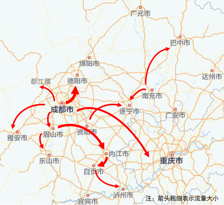 1.出行城市研判。假期出行主要方向集中在成都往德阳、成都往眉山、眉山往内江和自贡、南充往巴中、成都往雅安、成都往都江堰等方向。