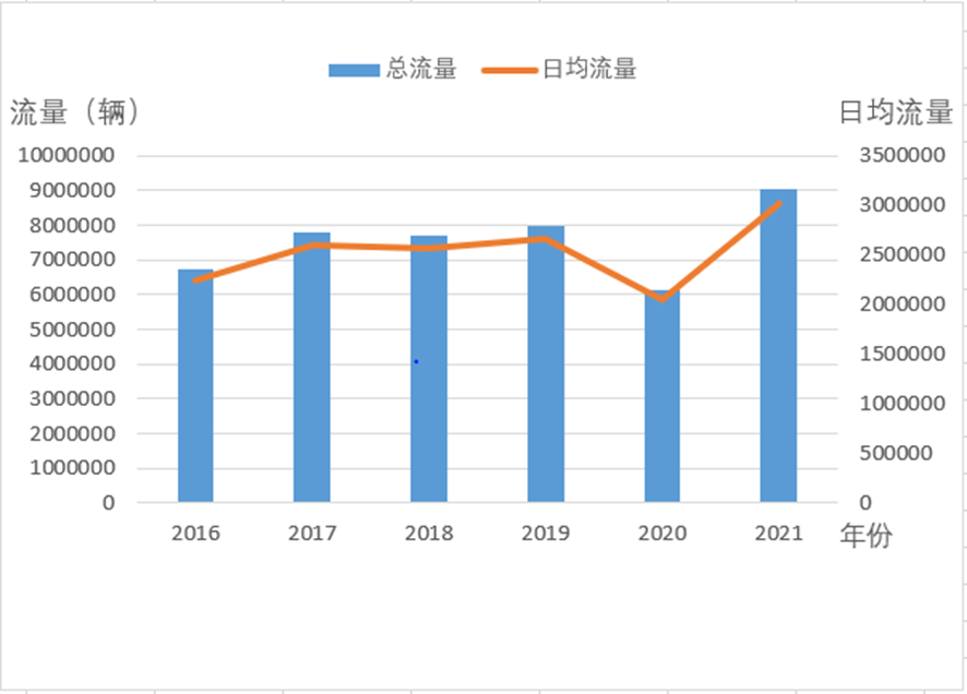 ▲图1 近6年清明假期四川省高速公路总流量和增长趋势图