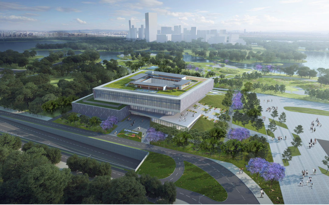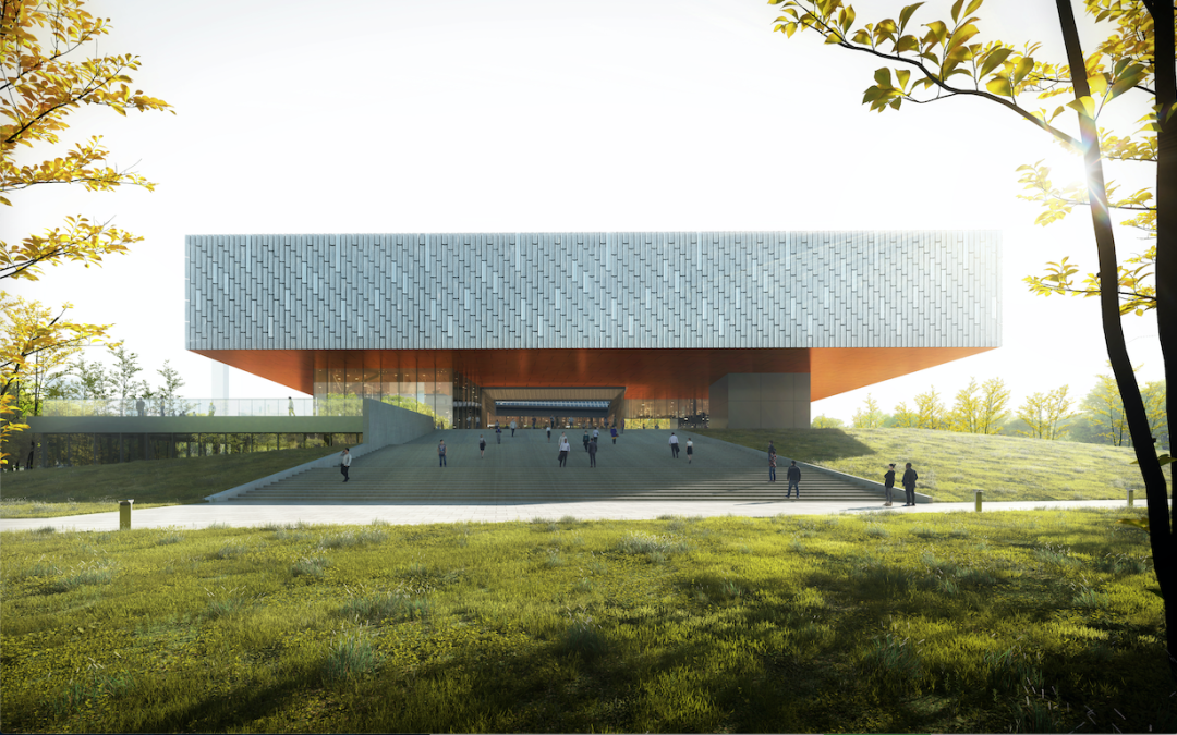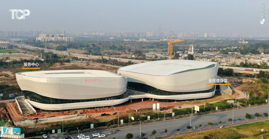 场馆外形没有死硬的棱角,取而代之的,是充满着律动感的线条。 三个主体建筑形态有异,却又浑然一体。现代化的设计语言,表达着简洁的未来美学,似乎永远涌动着的动态感,与永不停歇的“体育”精神,产生了完美的扣合。 主体建筑之一的多功能体育馆,将作为大运会兵乓球赛事场馆,为市民提供精彩的观赛体验,全省首个NBA标准篮球馆。多功能体育馆由主要比赛场馆和训练场组成,面积约为8.3万平方米,座位共计12000余座,场馆为大型甲级体育馆,可举办NBA季前赛,满足篮球、排球、体操、冰球、短道速滑等国内比赛及国际单项比赛要求。 图据:天府发展 “一站式”多功能体育中心,高新区体育中心,总面积20.16万平方米,近似于10个四川省体育馆的大小,位置处于成都高新区中和片区与陆肖TOD项目相邻。 图据:天府发展 此项目去年12月底已完工,随着体育中心的建成,成都高新区将再添一张城市建设的新名片。在提升老百姓文化体育生活品质的同时,它也将为成都建设世界赛事名城提供重要的助力! 成都的许多书店、图书馆一直以来都是不少人闲暇时的选择继日前。东安湖体育公园图书馆(媒体中心)坐落于东安湖畔,大运会期间它将作为主媒体中心向全世界媒体记者开放。幕墙外立面基本呈现,并于明年开放。 对东安湖体育公园“一场三馆”举办的开幕式,及其他赛事盛况实时转播赛后,它将改造成为区级图书馆、档案馆,为市民提供休闲阅读的高品质生活空间,加快城市功能提升。 效果图 图书馆(媒体中心),总建筑面积约4.5万平方米,以钢结构良好的可塑性构造布局。同时通过玻璃幕墙系统,弯弧穿孔铝板系统、全玻幕墙系统,铝单板幕墙系统、铝镁锰金属屋面系统及雨棚栏杆等零星工程。打造既有传统色彩又具地方特色的外立面及中庭效果,营造“东安书院”意境。 效果图 接下来,项目方将协同参建各方高标准高要求地进行建造,确保项目在2021年4月如期完美呈现,为大运会的精彩举办及城市未来发展贡献力量。