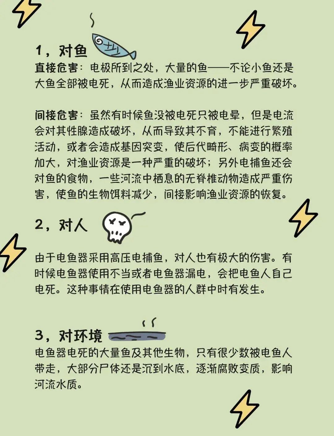 经查,2021年3月30日凌晨,李某某在花园镇翠湖村5组的翠湖河沟中使用电瓶非法捕捞水产品共3公斤,被公安机关当场查获。 目前,违法嫌疑人李某某已被公安机关行政拘留。 电捕鱼的危害 广大市民朋友要学法、守法 共同维护好生态环境