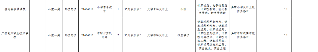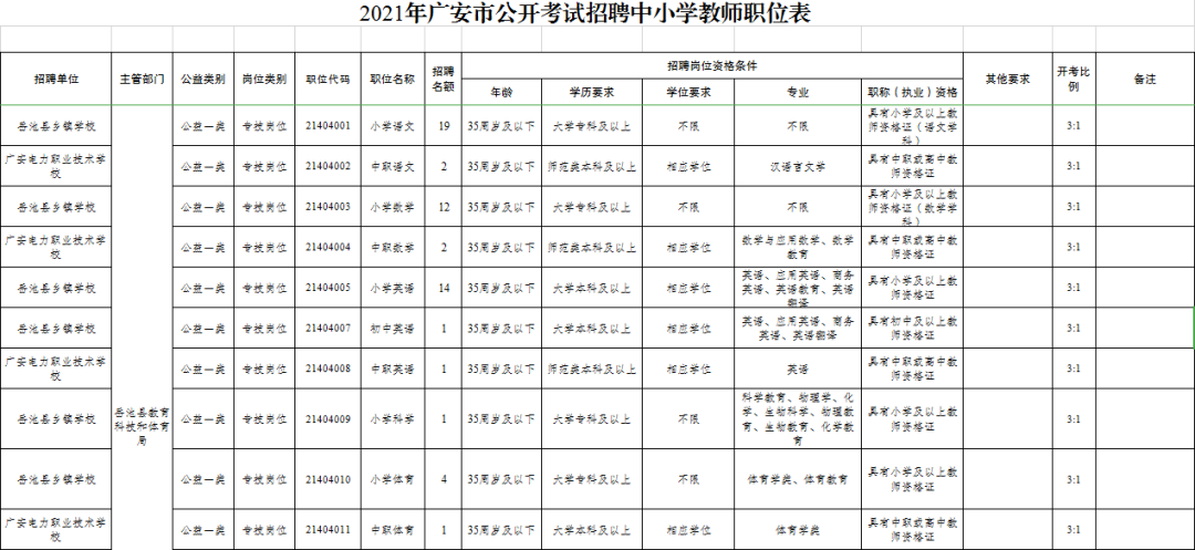 附件:2021年广安市事业单位公开考试招聘中小学教师职位表(点文末【阅读原文】查看)