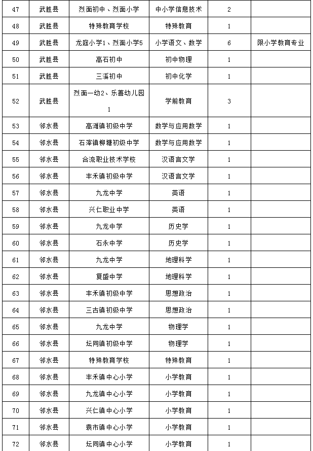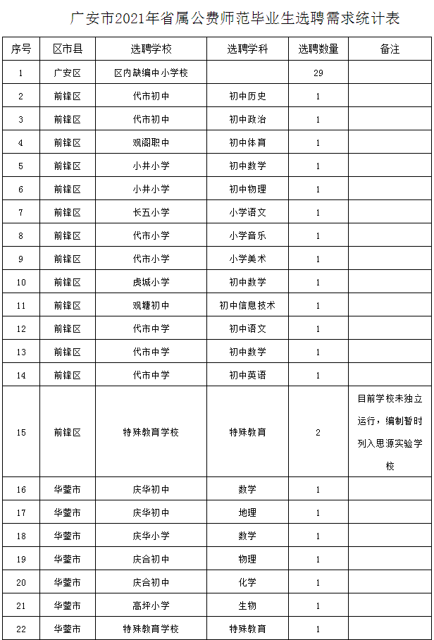 附件:广安市2021年省属公费师范毕业生选聘需求统计表