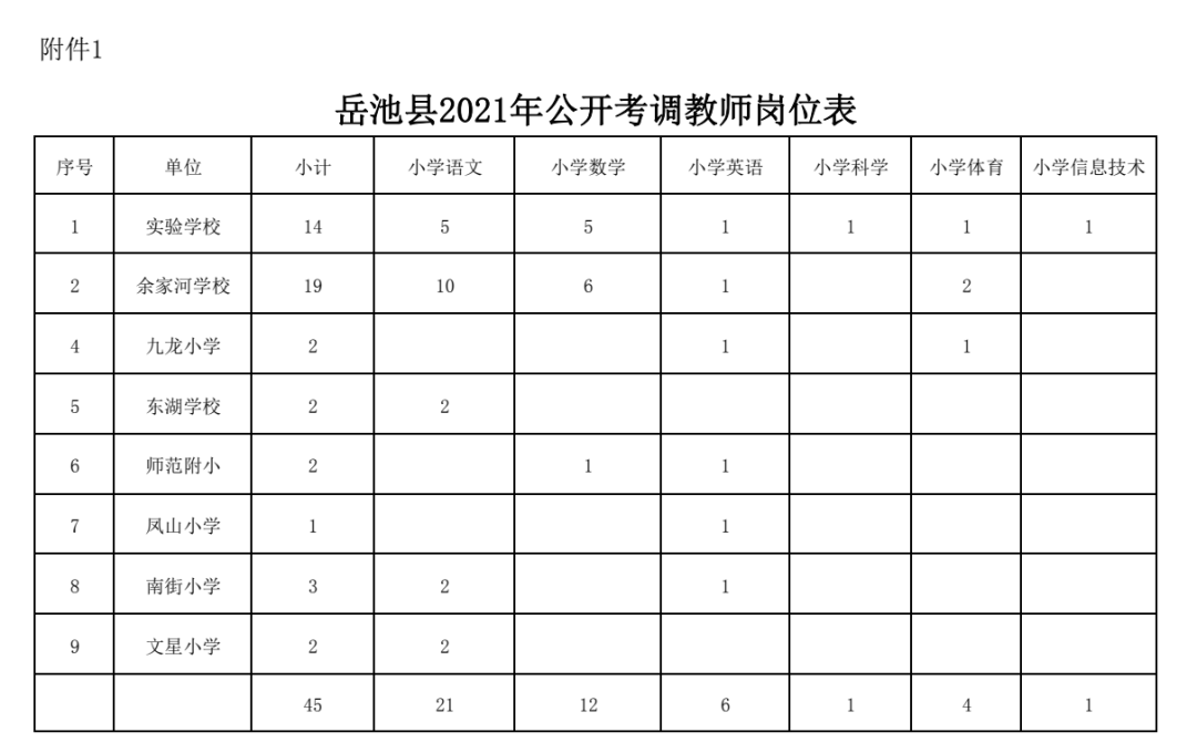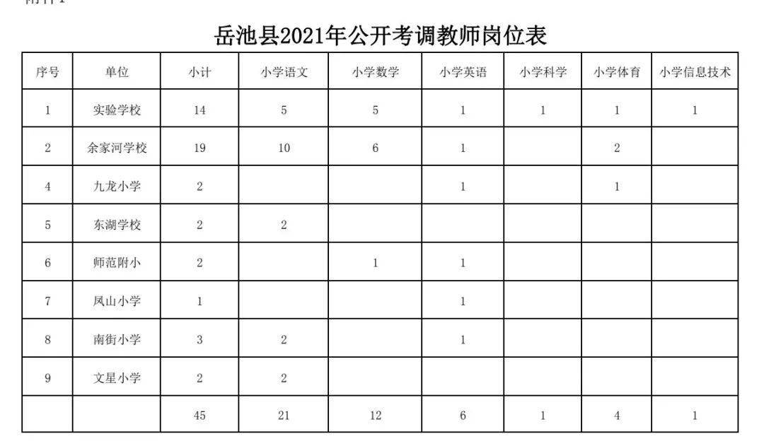 岳池县2021年公开考调教师