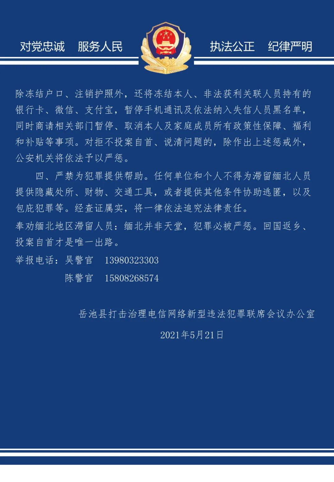 关于敦促滞留缅北的岳池籍人员限期回国返乡的告知书