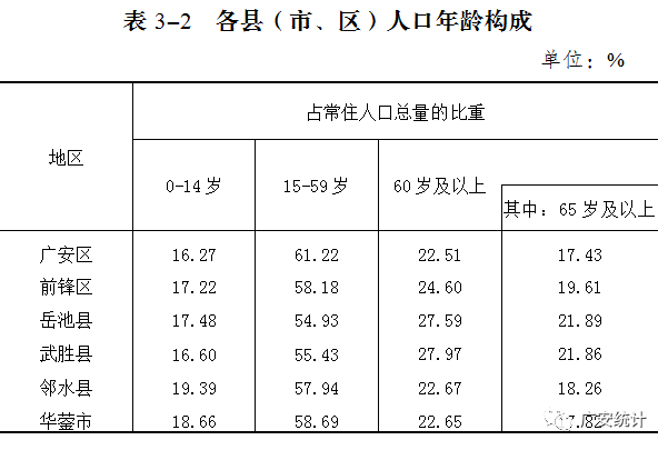 [2]常住人口包括:居住在本乡镇街道且户口在本乡镇街道或户口待定的人;居住在本乡镇街道且离开户口登记地所在的乡镇街道半年以上的人;户口在本乡镇街道且外出不满半年或在境外工作学习的人。[3]家庭户是指以家庭成员关系为主、居住一处共同生活的人组成的户。[4]指各县(市、区)的常住人口占全市常住人口总量的比重。[5]因2013年广安区和前锋区行政区划调整,2010年广安区和前锋区常住人口数据已按调整后行政区划作了修订。