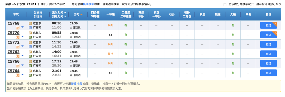 7月3日,小编从12306官网获悉,7月11日起,广安南至成都东动车暂停“D”字头班次。与此同时,广安南往返成都东,其他“C”字头的班次,发车时间、用时也有相应调整。