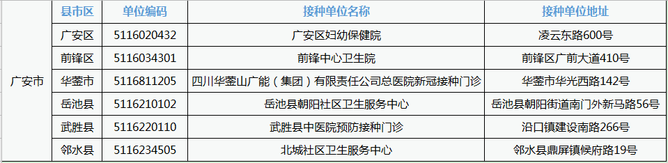 为保障各类人群新冠病毒疫苗接种工作平稳有序开展,7月9日起,广安市新冠疫苗接种服务开通在线预约!大家可通过预约系统提前登记相关信息,预约接种时间及地点,减少现场等待时间,方便疫苗接种! 广安各县(市、区) 网上预约接种点汇总 点击大图即可查看 预约流程 1、点击进入微信小程序“四川天府健康通”,填写个人基本信息。 请预约成功的市民合理安排时间接种, 逾期预约信息将自动作废! 快转发告诉身边人吧!