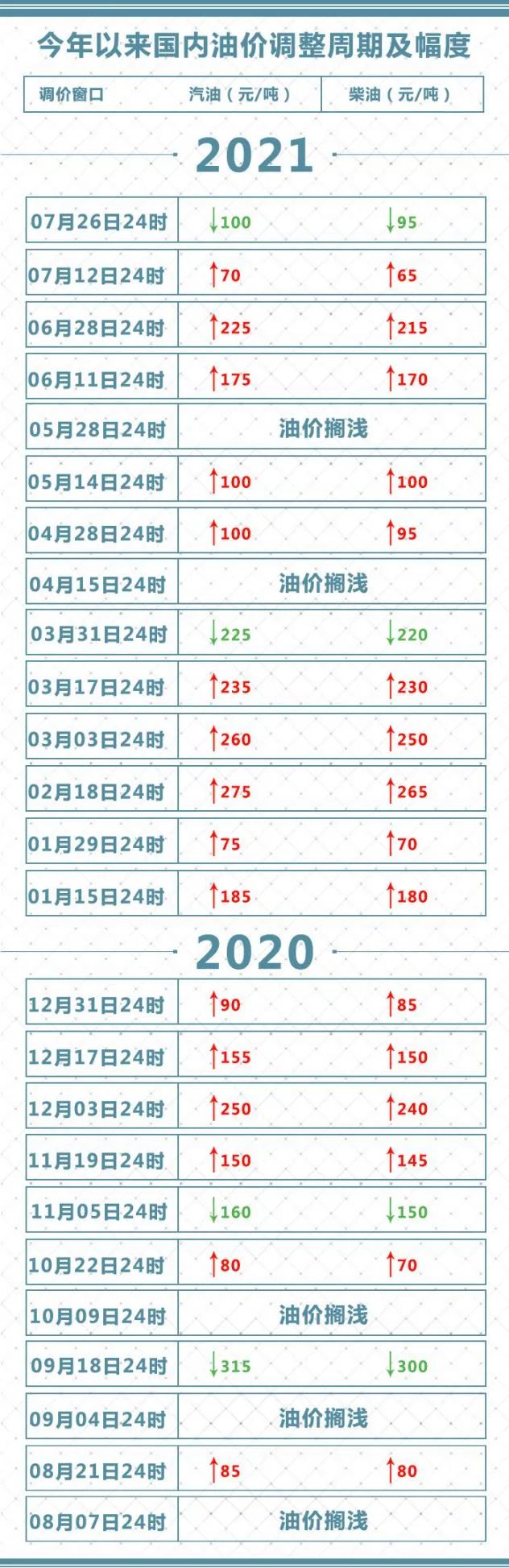 本次油价调整具体情况如下:汽油每吨降低100元,柴油每吨降低95元。