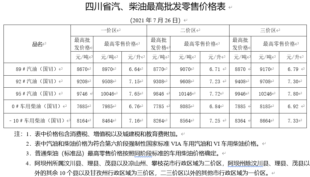 95号汽油每升下调0.08元;