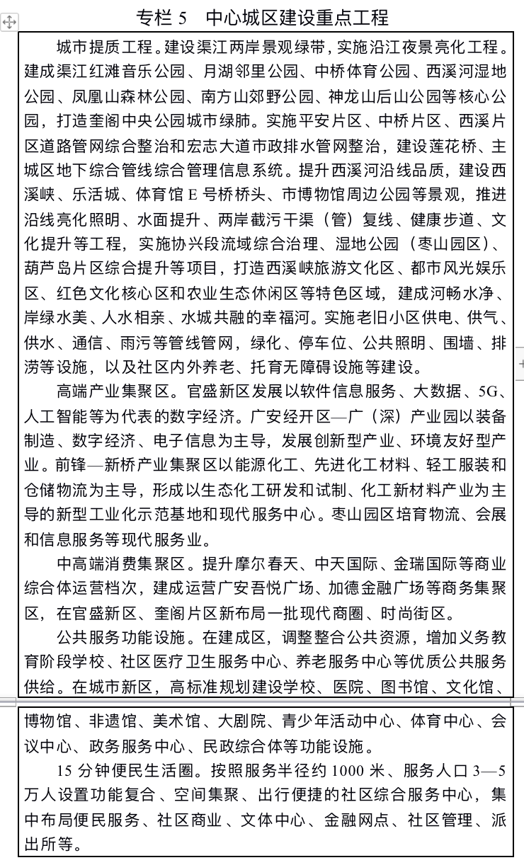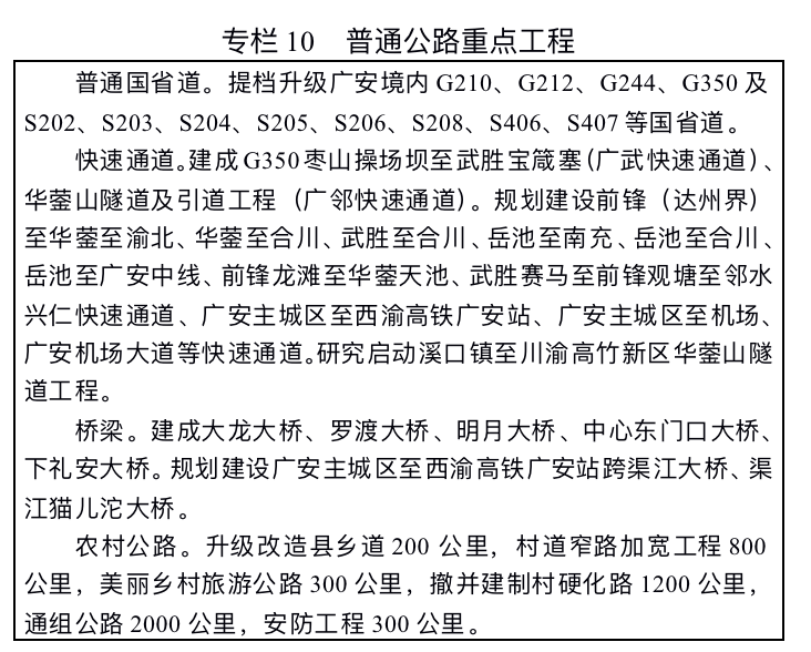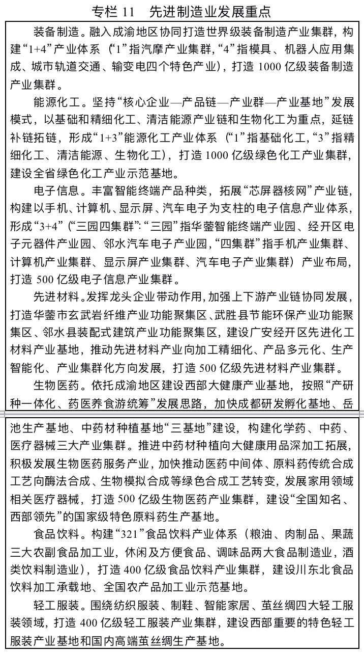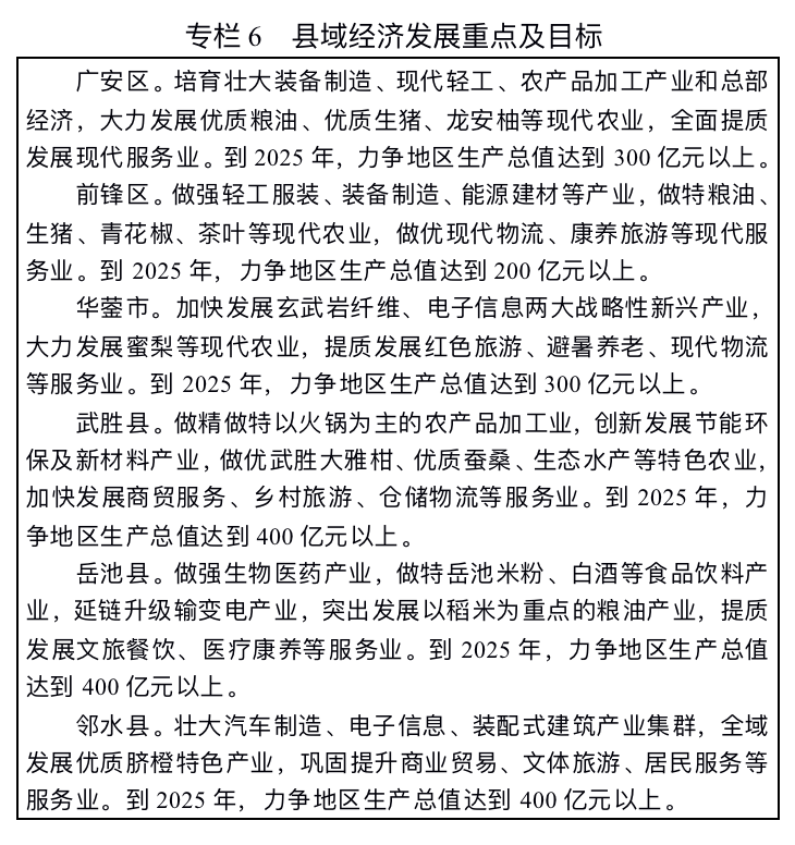 近日,广安市人民政府官网发布《广安市国民经济和社会发展第十四个五年规划和二〇三五年远景目标纲要》。