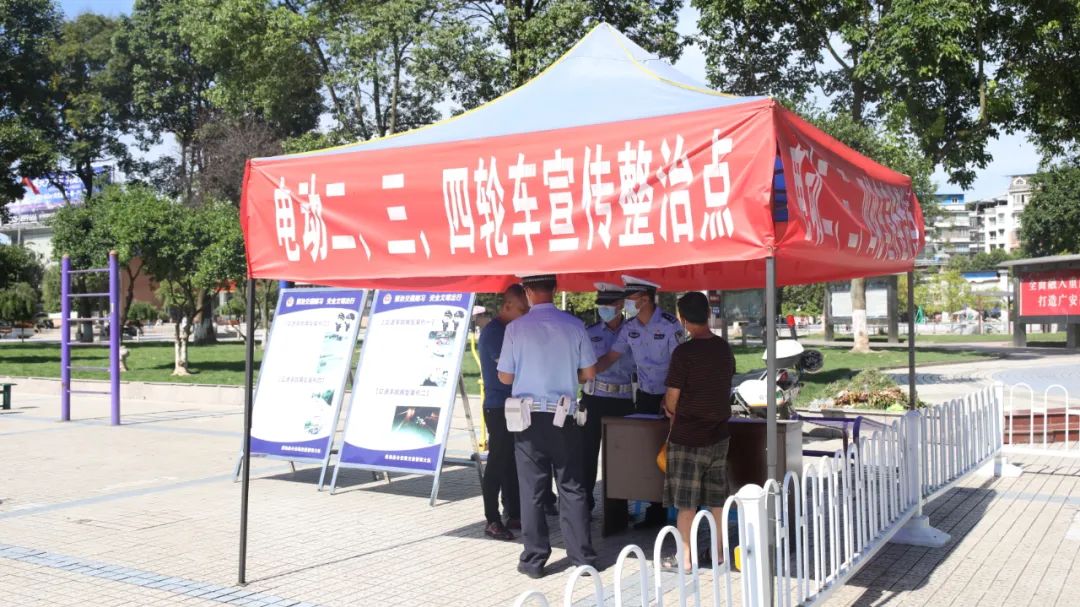 在县城区主要路口、广场等人员密集的地方,交通警察大队通过设置宣传整治点,向群众发放《关于开展电动车违法集中整治的通告》宣传资料等方式,面对面向群众讲解电动自行车、电动三(四)轮车交通违法行为的危害性,教育和引导广大交通参与者自觉遵守交通法律法规,抵制交通陋习。同时,交警还走进各电动自行车、电动三(四)轮车销售点,重点检查是否有营业执照、在售的电动车是否有合格证明、是否存在非法拼装、改装电动车销售的情况。