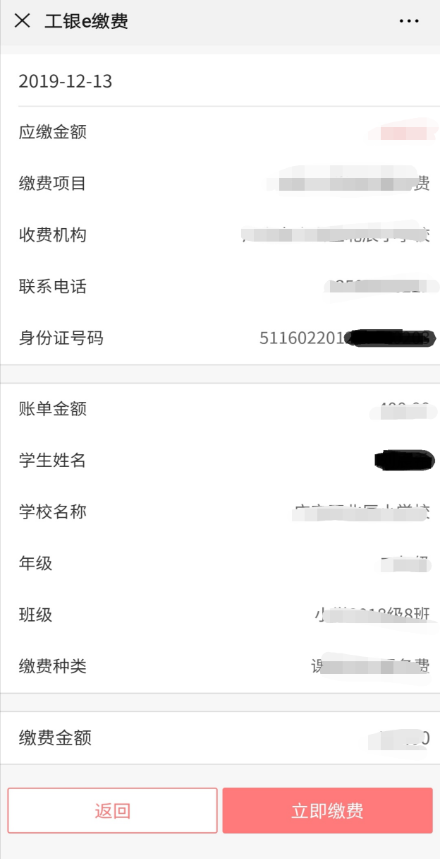 若通过微信扫描二维码,确认账单付款前系统自动提示进行身份验证。(若您未开通工银e支付,请输入您的工行卡号及开卡时在银行柜面预留的手机号码联动开通完成支付。)