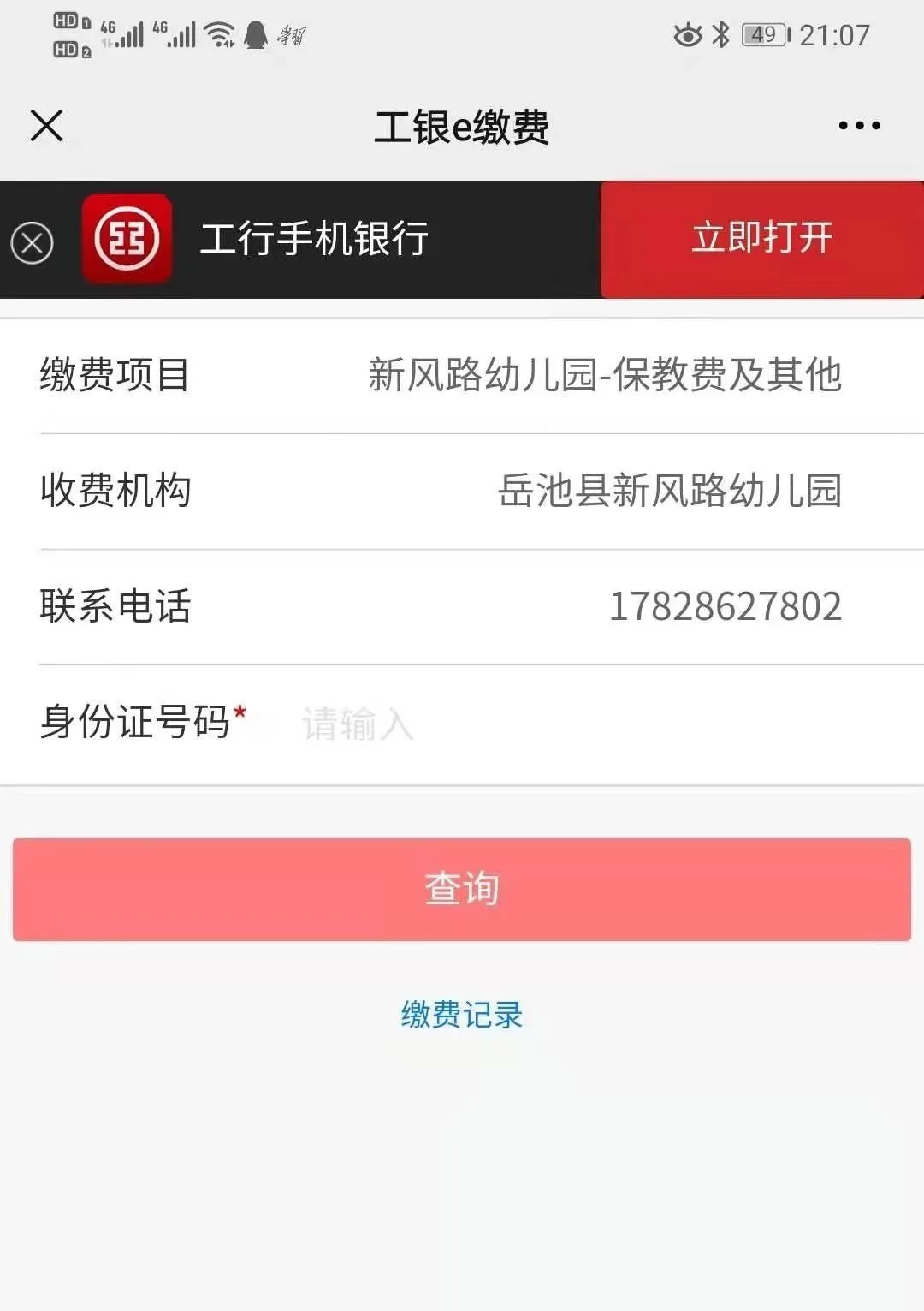 微信扫码下图的二维码 ,用工商银行账户进行缴费。