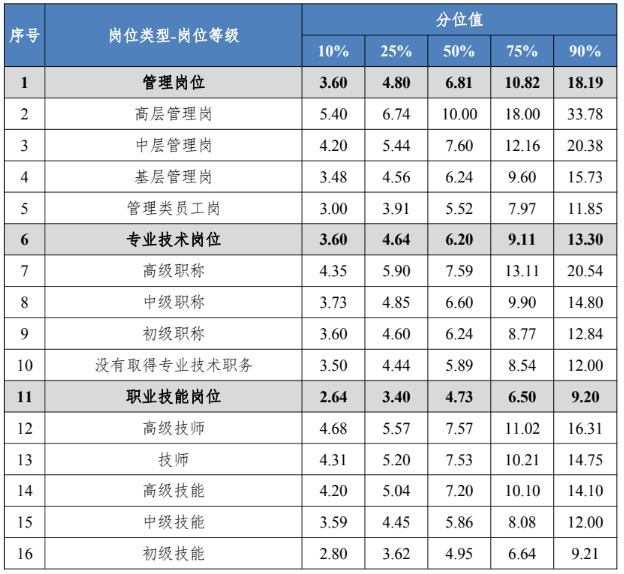 (四)分岗位等级的企业从业人员工资价位(单位:万元)