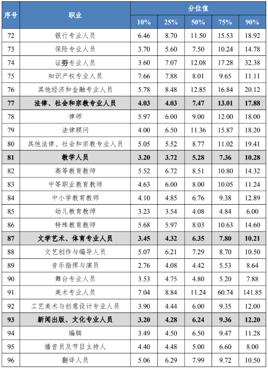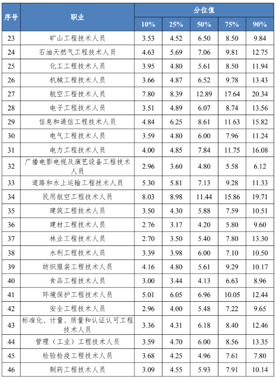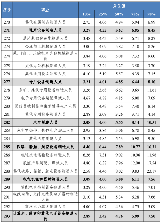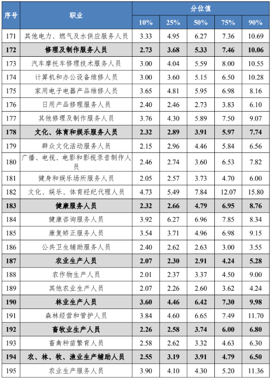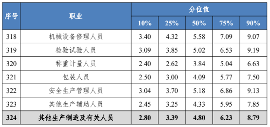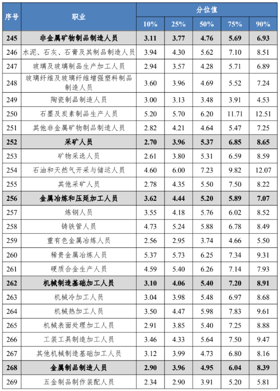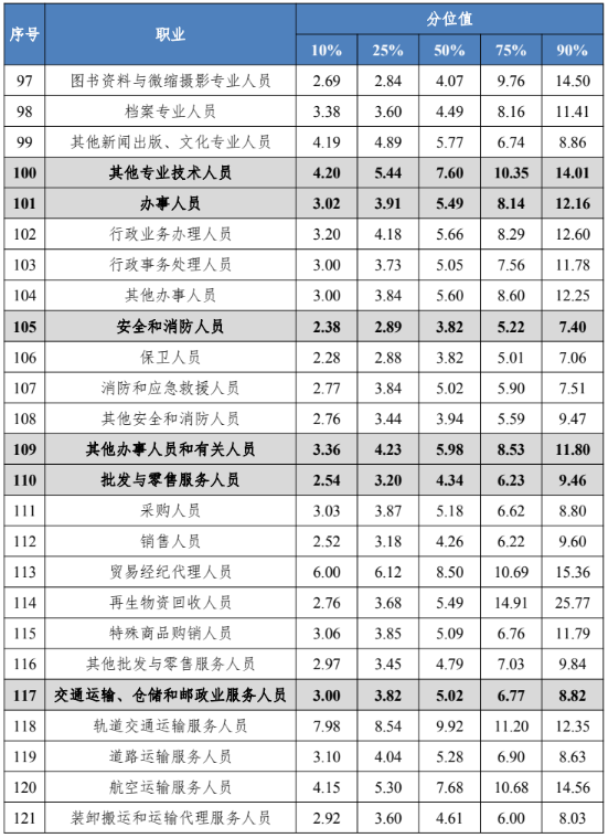 三、分职业小类的企业从业人员工资价位(单位:万元)