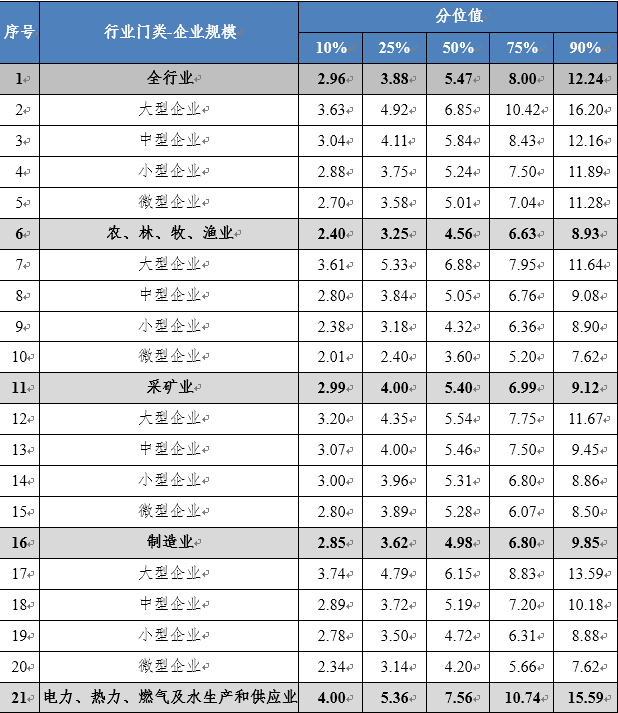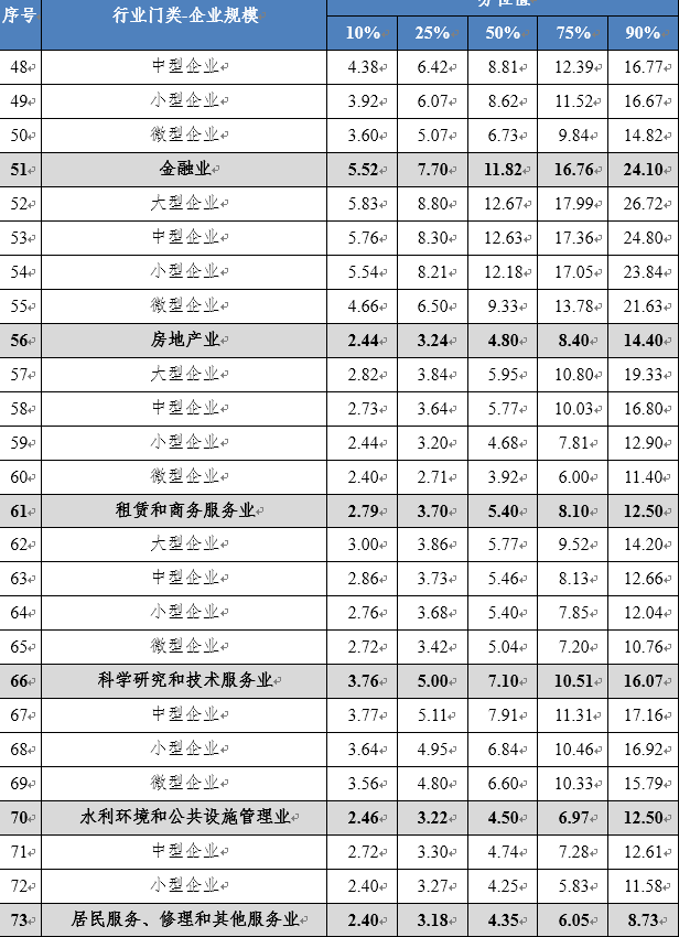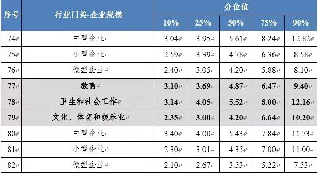 (二)分行业门类不同企业规模的企业从业人员工资价位(单位:万元)