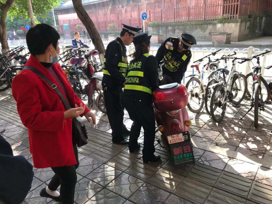二是全力开展整治。成立工作专班,重点对辖区建设路、大东街和上南街等路段人行道上的非机动车乱停放问题进行了集中整治,对巡查发现的违停行为,以劝导规范为主,行政执法为辅助措施。对违停车主不在现场的,执法人员亲自动手将车辆搬移至临时停放处,不留管理盲区。