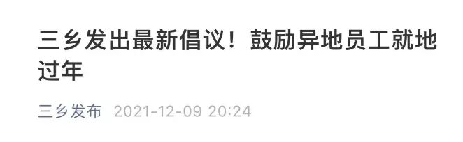 广东中山市三乡镇新冠疫情防控指挥部办公室已于12月9日向镇内企业发出倡议:广大企业要鼓励员工就地过年,形成“非必要不离广东”的共识。
