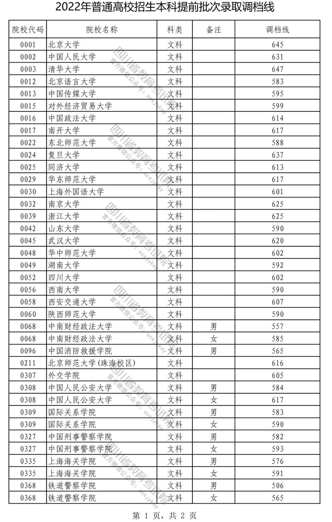 四川省2022年普通高校本科提前批次正在投档录取中,现将在川招生普通高校录取调档线公布如下。
