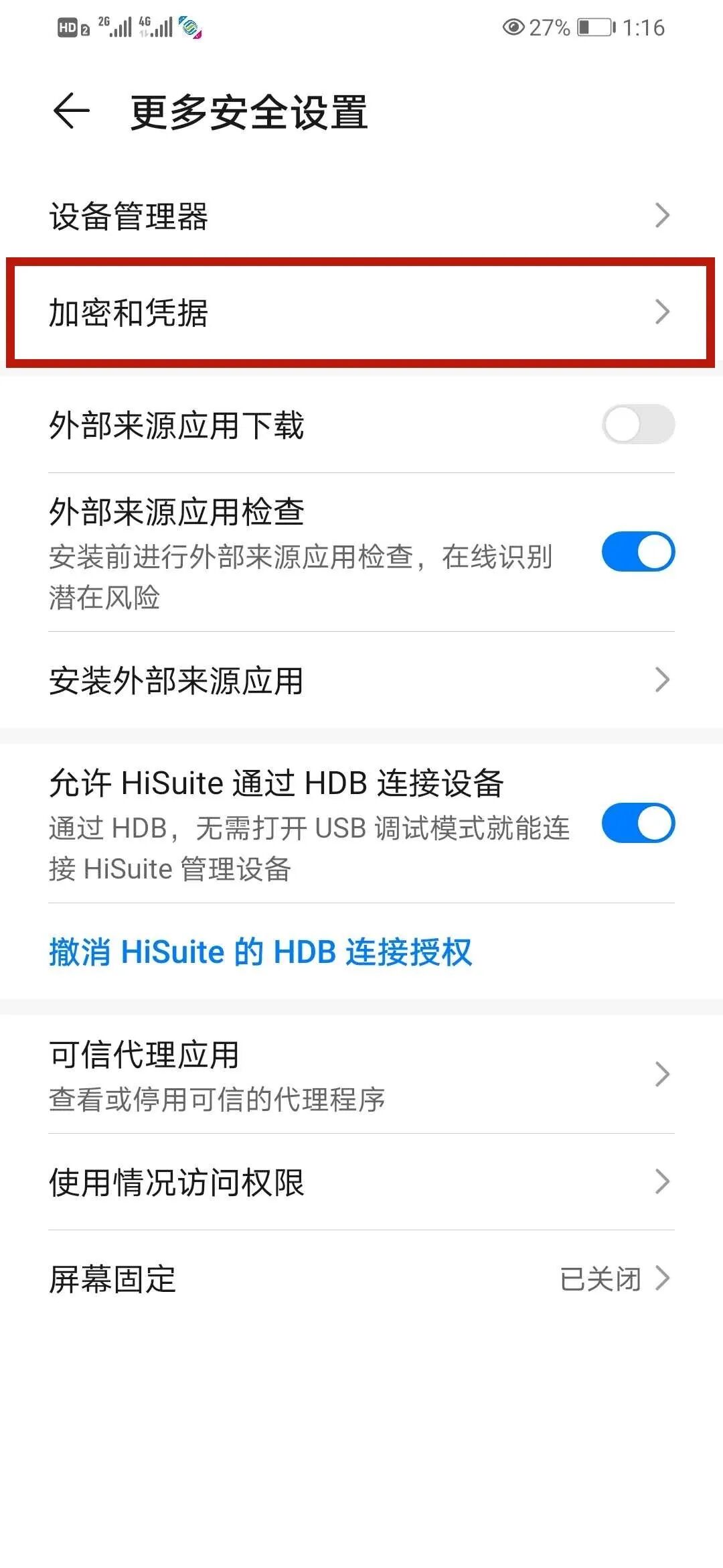 点击设置,选择安全选项——点击更多安全设置——选择加密和凭据——选择设置卡1/卡2锁——点击锁定SIM卡按钮——第一次设置密码时需先输入原始默认的PIN码(一般为“1234”)——输入个人四位密码后即设置成功。