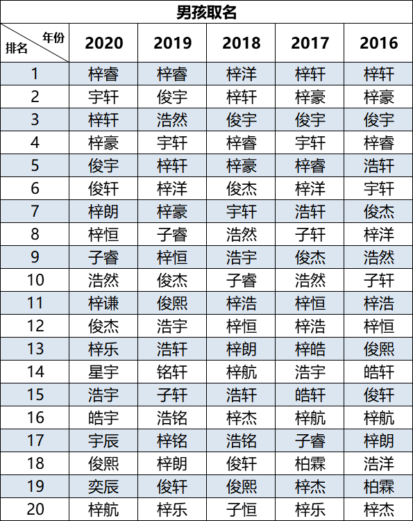 在一众“梓”“宇”“睿”“轩”“芷”“晴”中