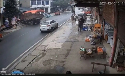 岳池伏龙场镇惊魂一刻!大货车刹不住了