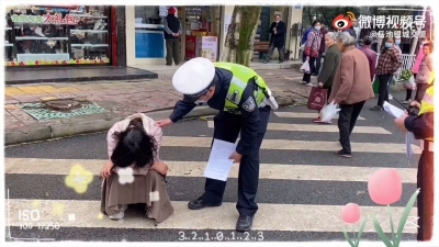 11月5日上午,岳池交警在执勤途中遇一女子蹲在人行横道上